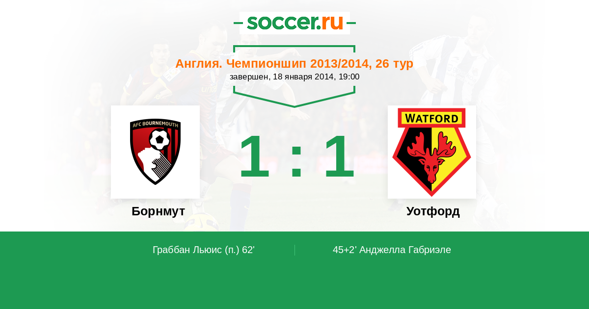 Протокол матча Борнмут против Уотфорд