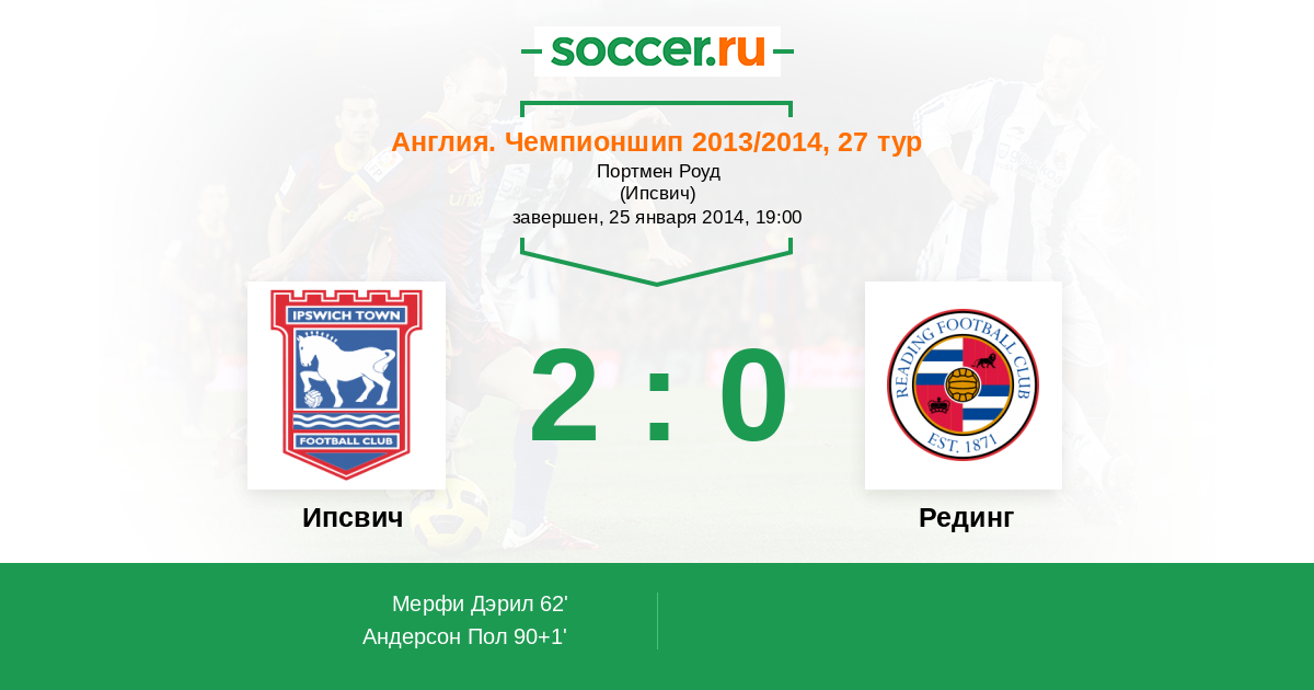 Протокол матча Ипсвич против Рединг