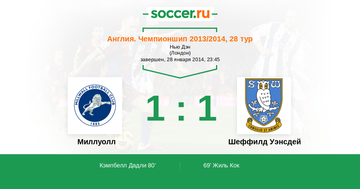 Протокол матча Миллуолл против Шеффилд Уэнсдей