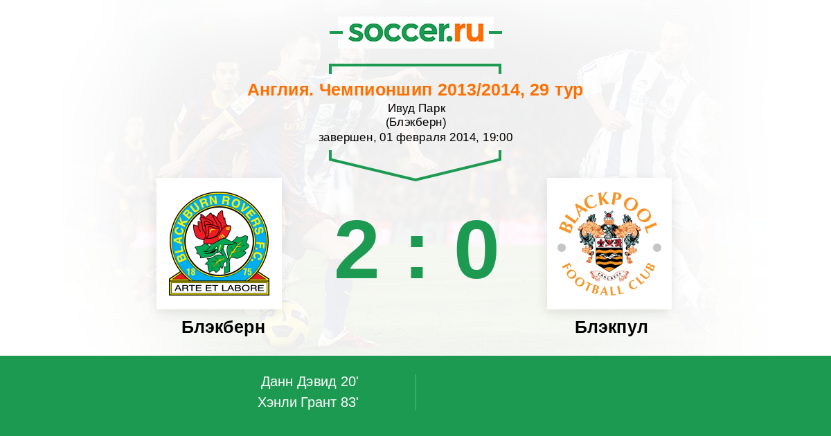 Протокол матча Блэкберн против Блэкпул