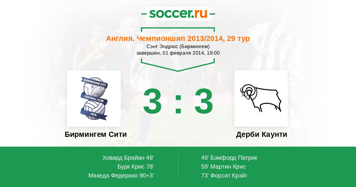 Протокол матча Бирмингем Сити против Дерби Каунти