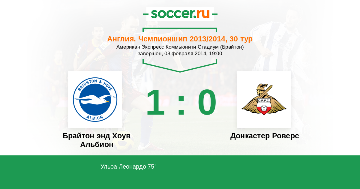 Протокол матча Брайтон энд Хоув Альбион против Донкастер Роверс