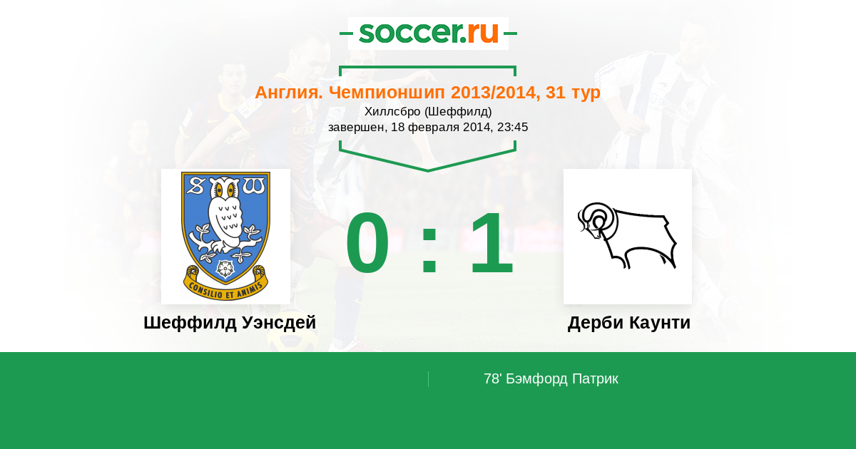 Протокол матча Шеффилд Уэнсдей против Дерби Каунти
