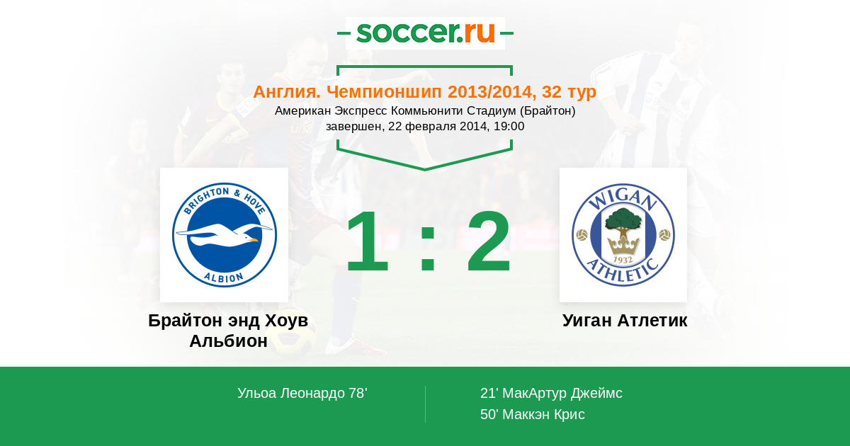 Протокол матча Брайтон энд Хоув Альбион против Уиган Атлетик
