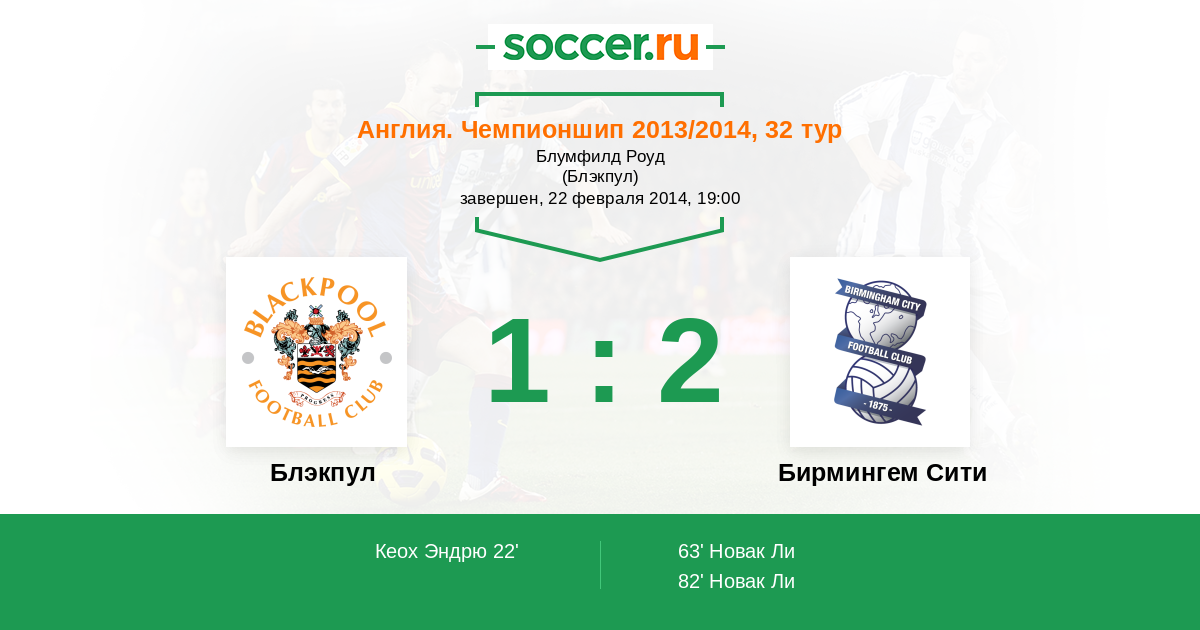 Протокол матча Блэкпул против Бирмингем Сити