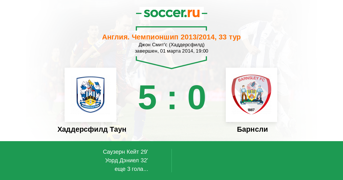 Протокол матча Хаддерсфилд Таун против Барнсли