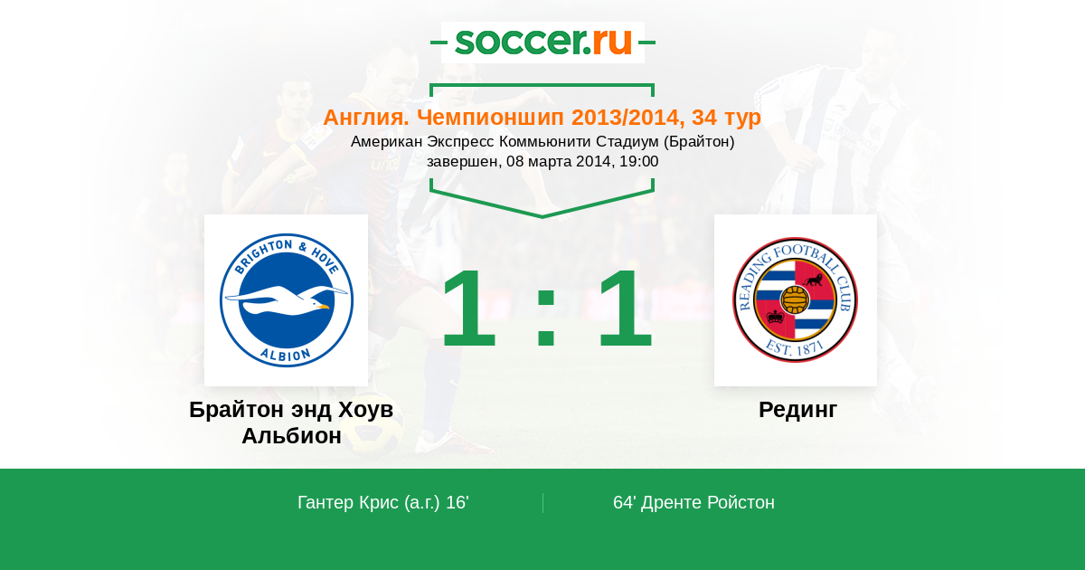 Протокол матча Брайтон энд Хоув Альбион против Рединг