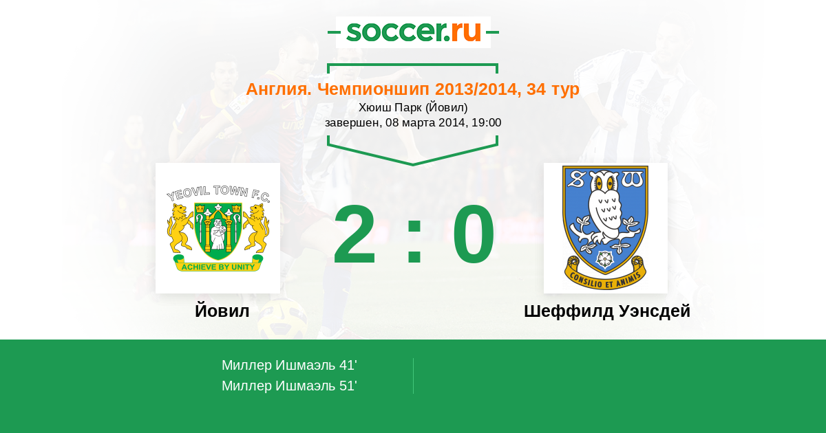 Протокол матча Йовил против Шеффилд Уэнсдей