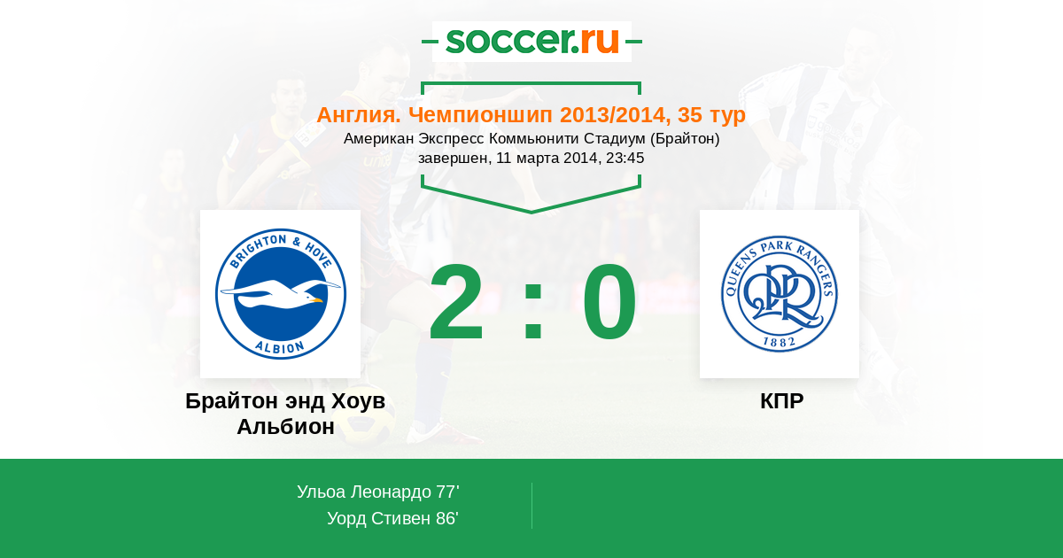 Протокол матча Брайтон энд Хоув Альбион против КПР