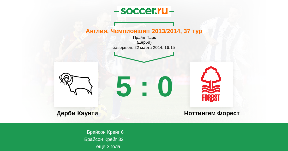 Протокол матча Дерби Каунти против Ноттингем Форест