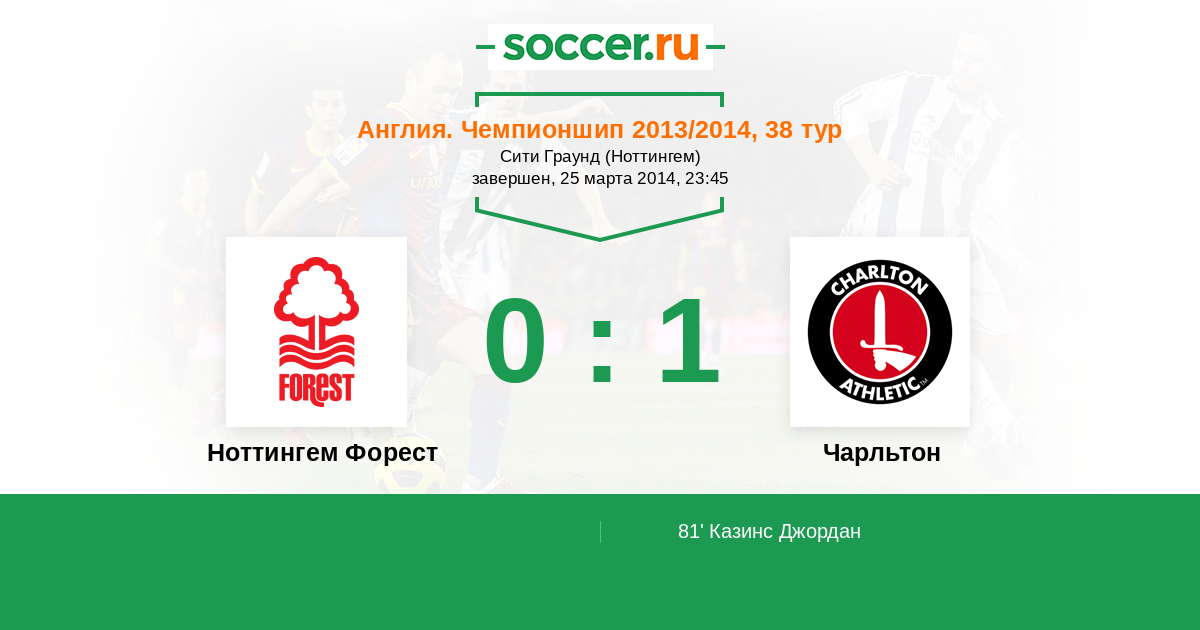 Протокол матча Ноттингем Форест против Чарльтон
