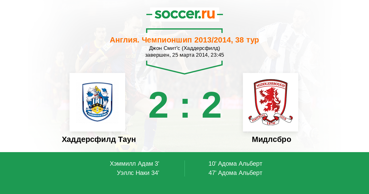 Протокол матча Хаддерсфилд Таун против Мидлсбро