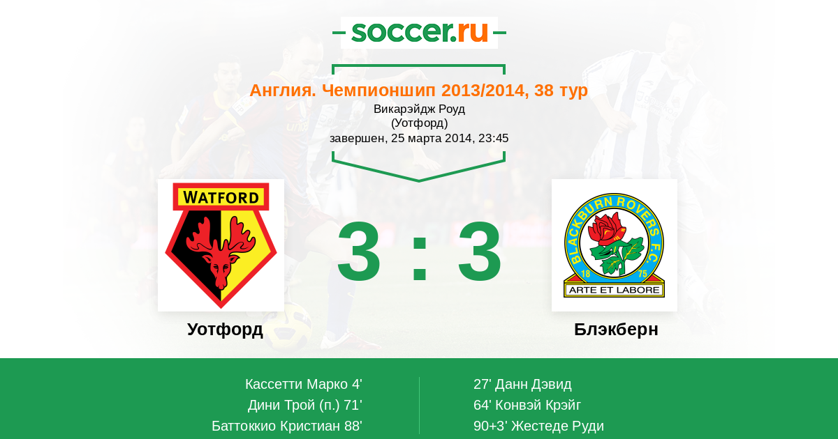 Протокол матча Уотфорд против Блэкберн