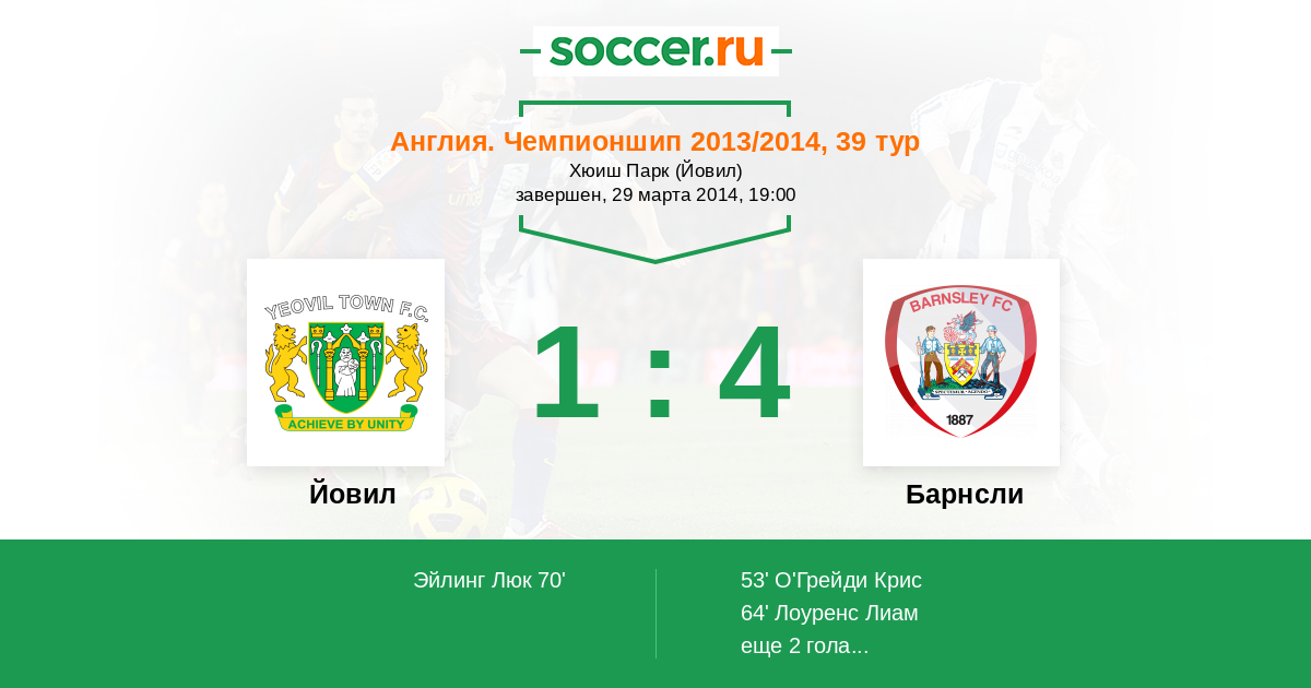Протокол матча Йовил против Барнсли