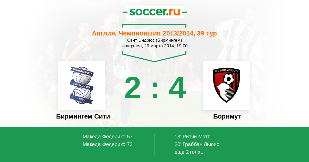 Протокол матча Бирмингем Сити против Борнмут