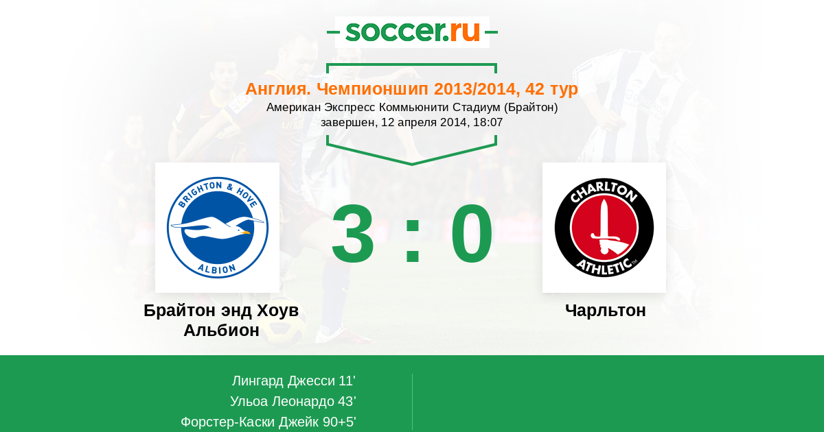 Протокол матча Брайтон энд Хоув Альбион против Чарльтон