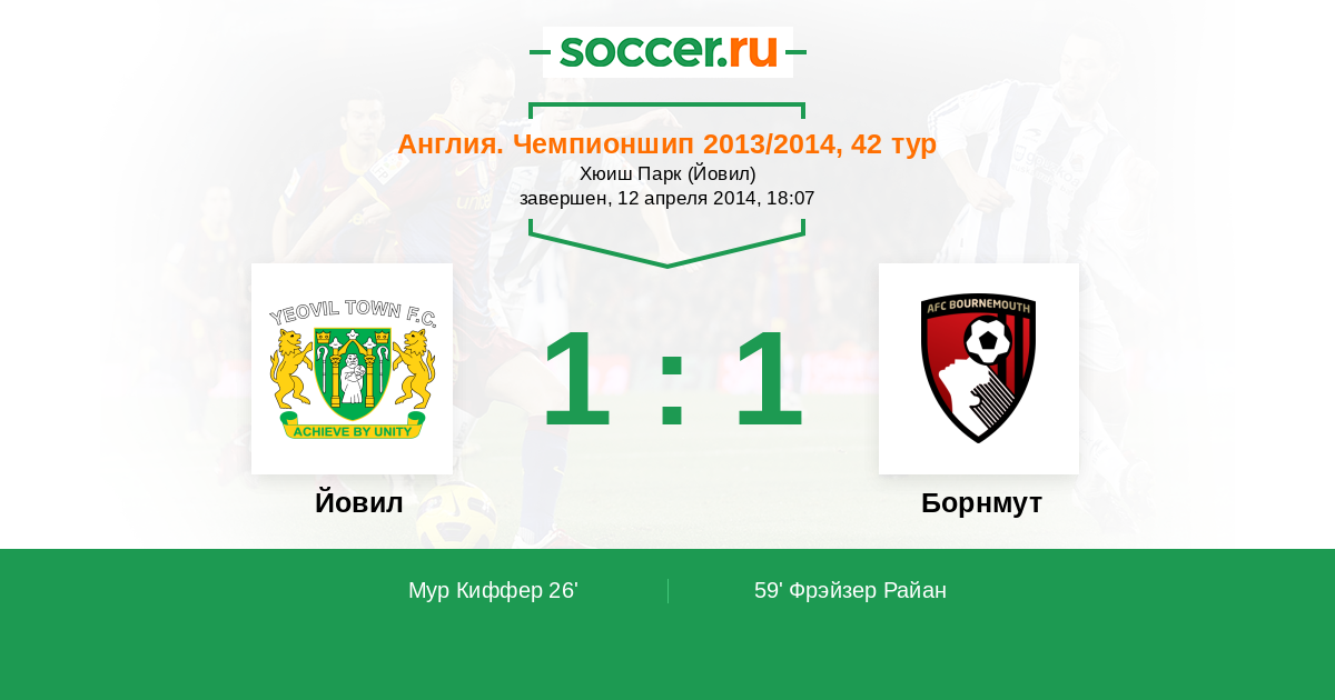 Протокол матча Йовил против Борнмут