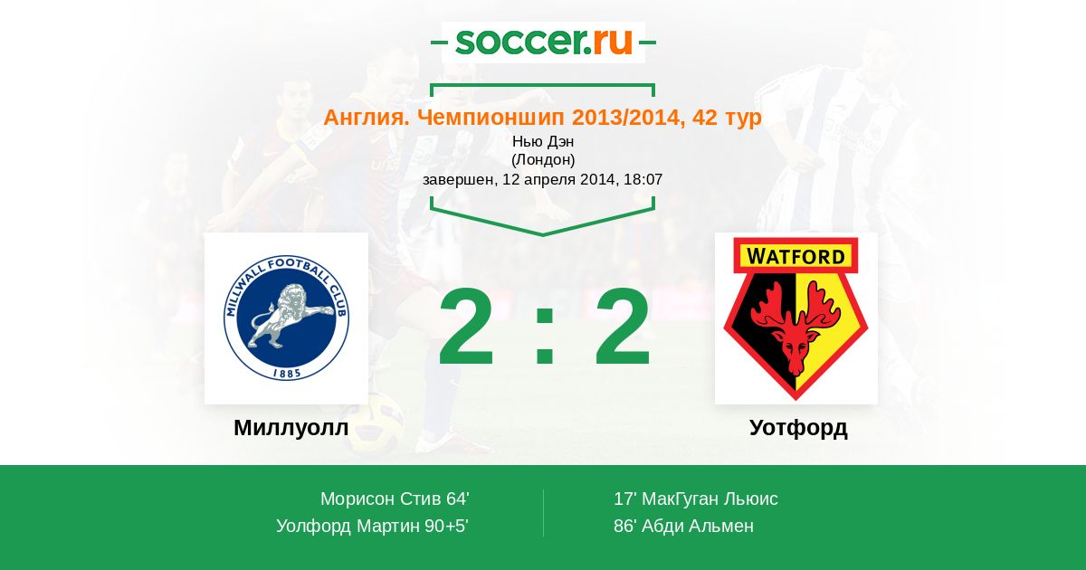 Протокол матча Миллуолл против Уотфорд