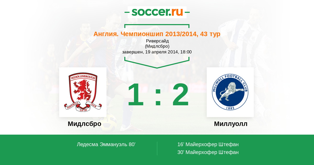 Протокол матча Мидлсбро против Миллуолл
