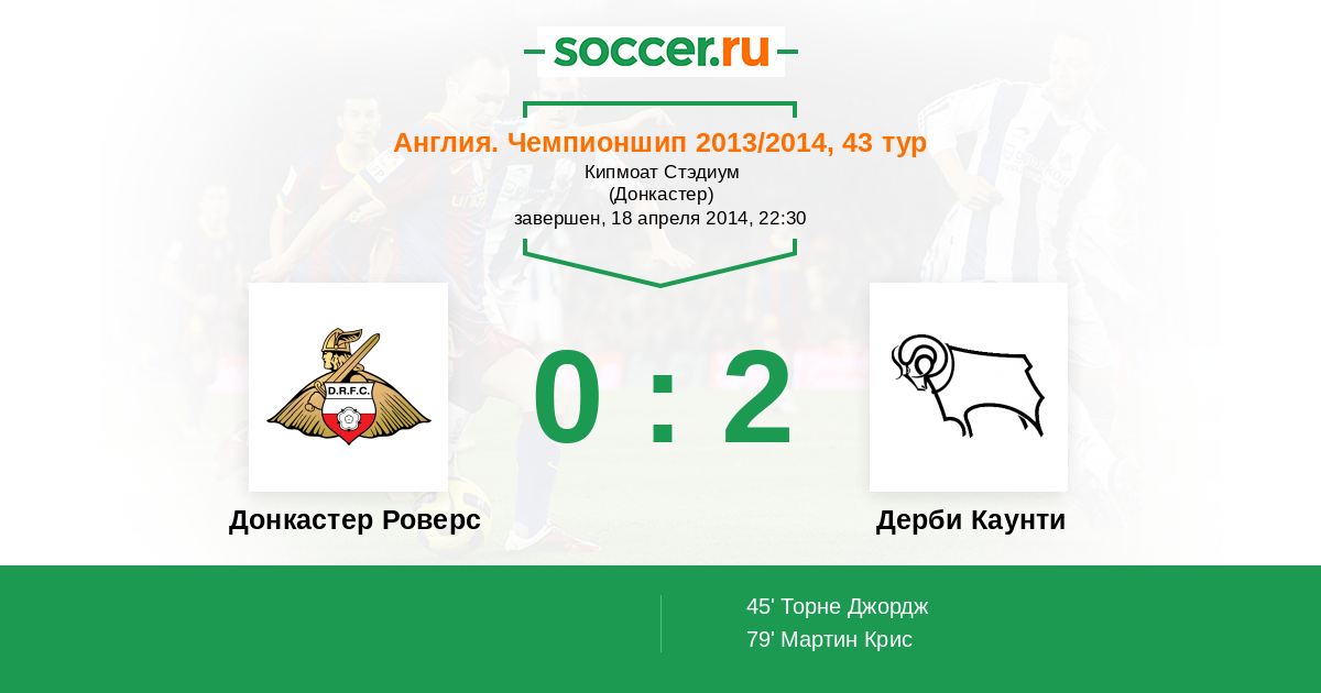 Протокол матча Донкастер Роверс против Дерби Каунти