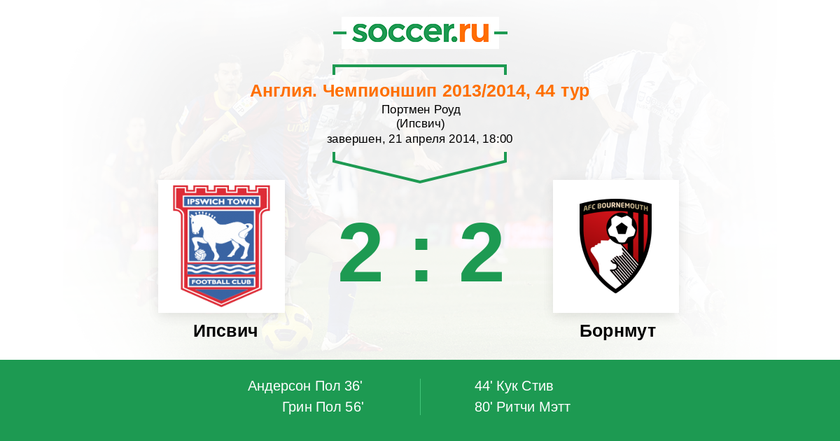 Протокол матча Ипсвич против Борнмут