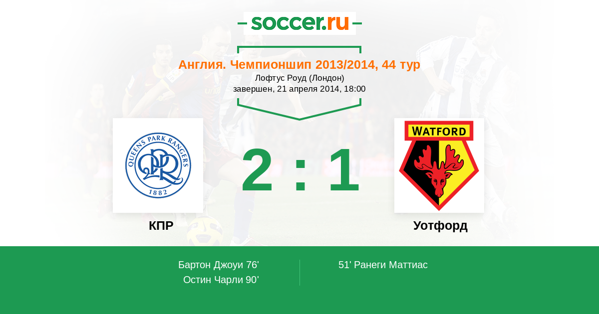 Протокол матча КПР против Уотфорд