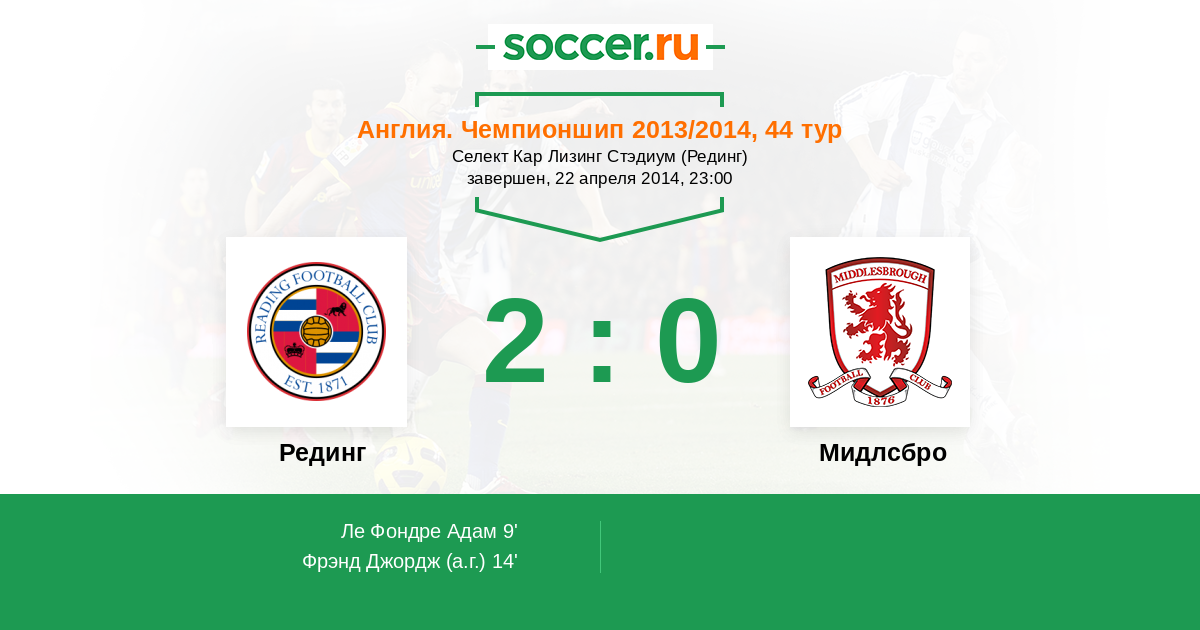 Протокол матча Рединг против Мидлсбро