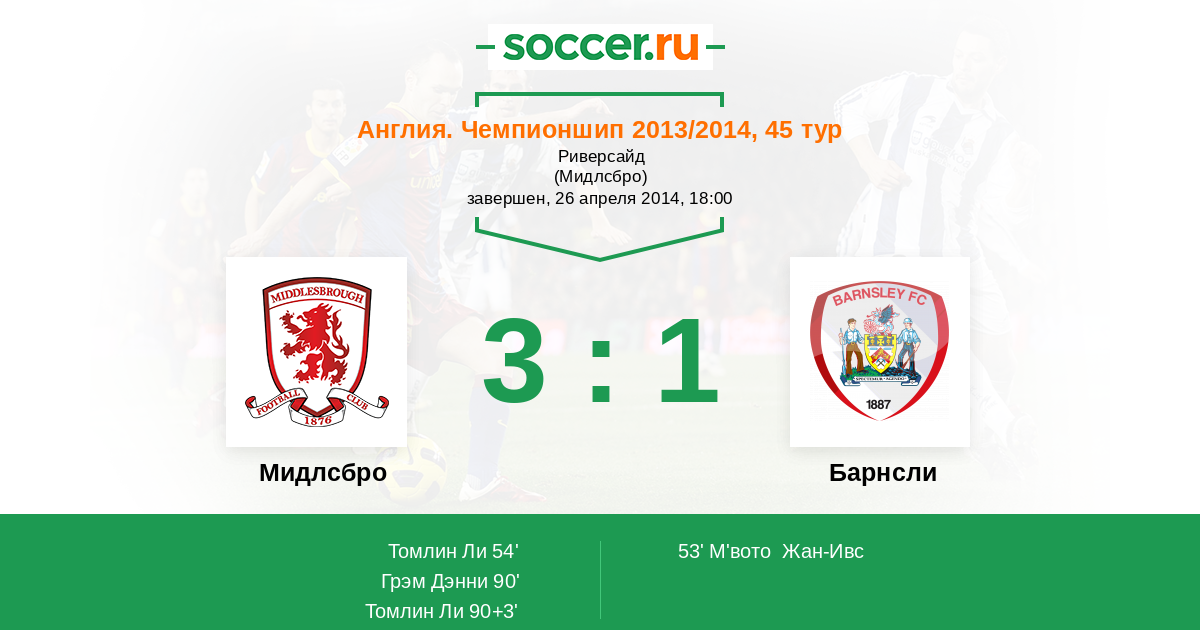 Протокол матча Мидлсбро против Барнсли