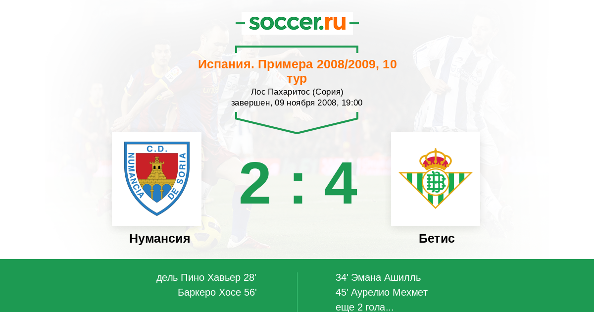 Протокол матча Нумансия против Бетис