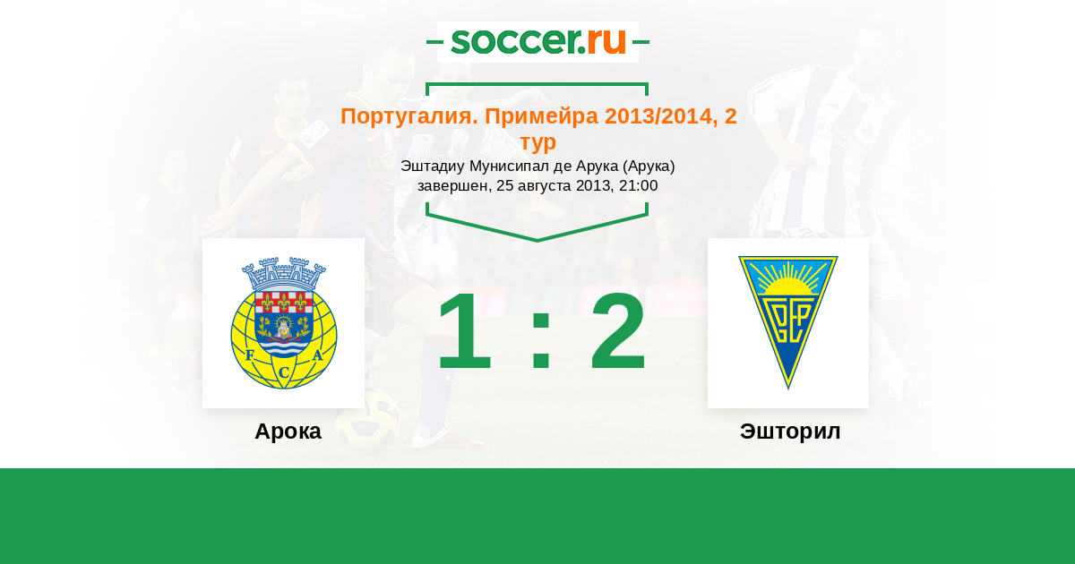 Португалия. Примейра 18.08.2014 Арока Логотип футбольный клуб Арока 1:1 Логотип футбольный клуб Эшторил Эшторил