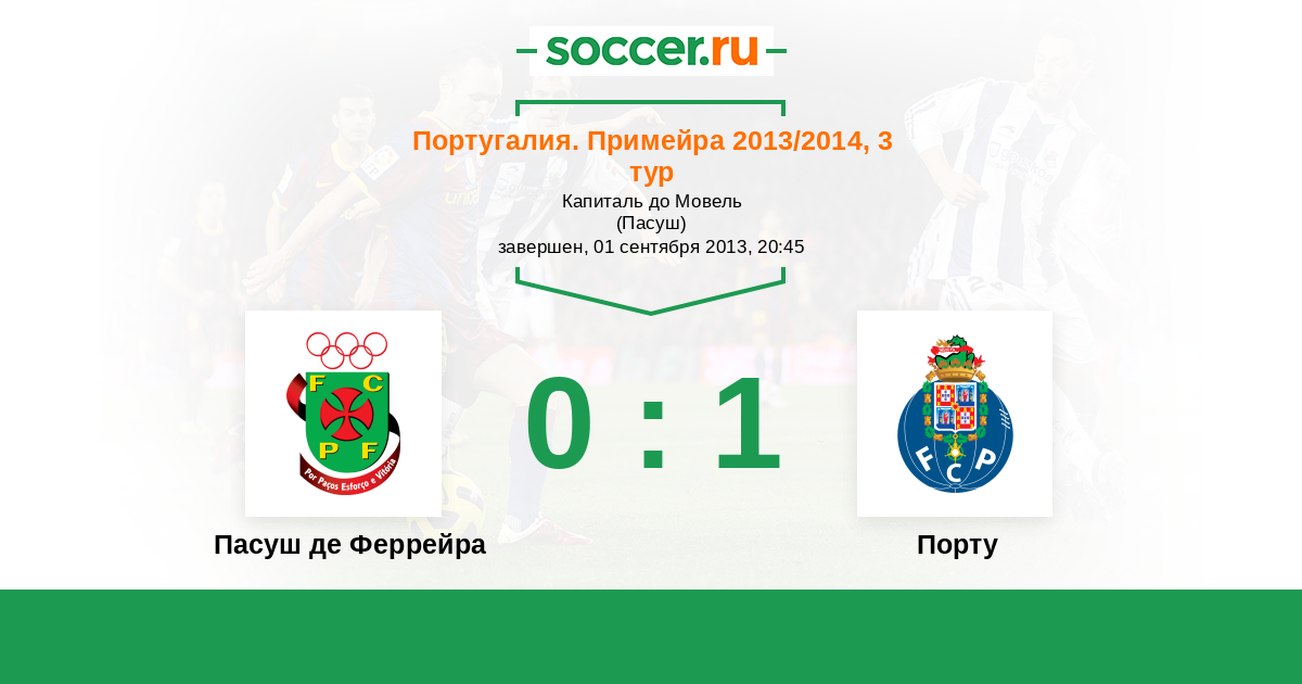Португалия. Примейра 23.08.2014 Пасуш де Феррейра Логотип футбольный клуб Пасуш де Феррейра 0:1 Логотип футбольный клуб Порту Порту