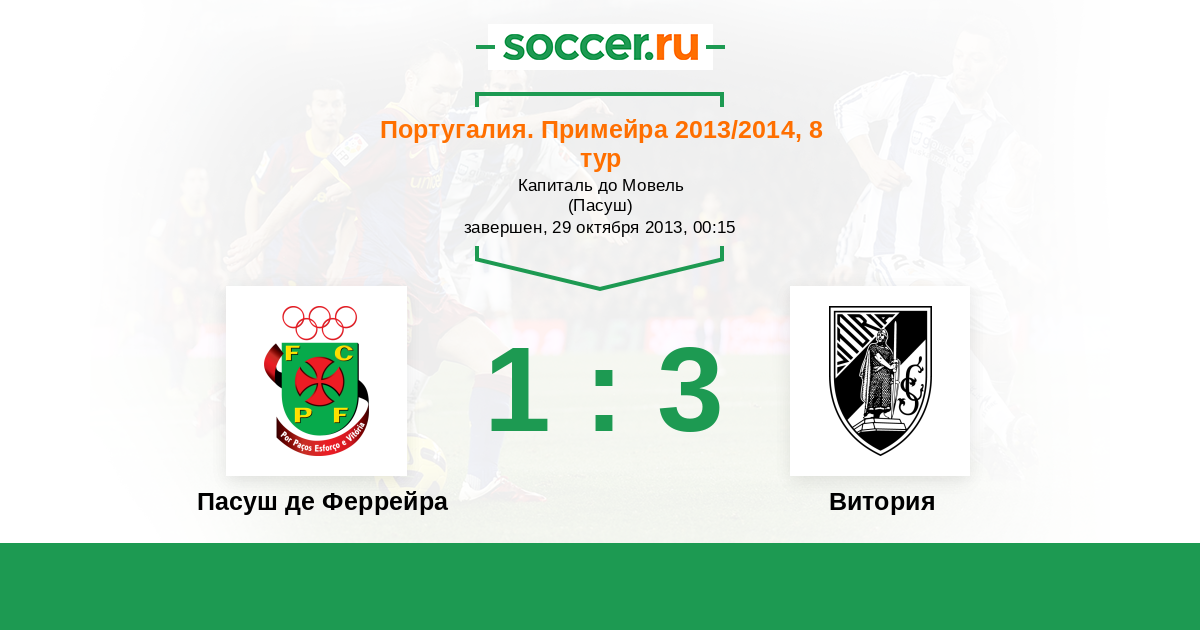 Португалия. Примейра 16.03.2014 Витория Логотип футбольный клуб Витория (Гимараеш) 1:2 Логотип футбольный клуб Пасуш де Феррейра Пасуш де Феррейра