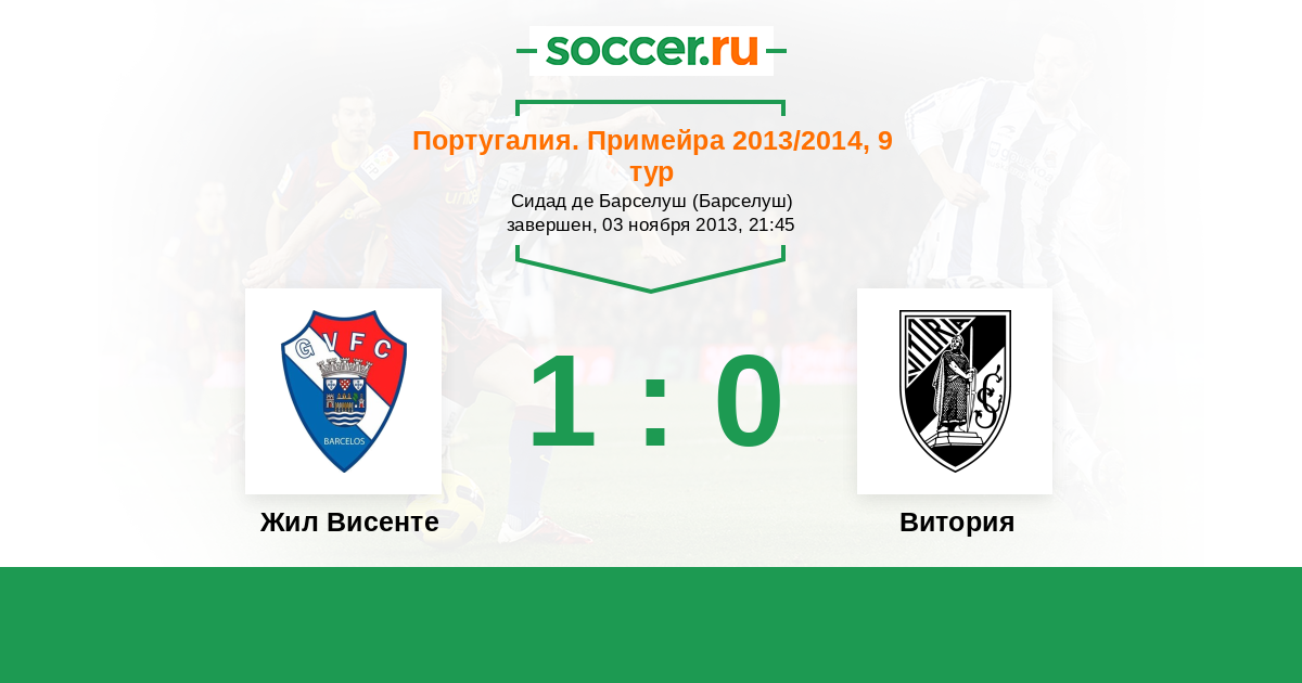 Португалия. Второй дивизион 14.10.2006 Жил Висенте Логотип футбольный клуб Жил Висенте (Барселуш) 1:1 Логотип футбольный клуб Витория (Гимараеш) Витория