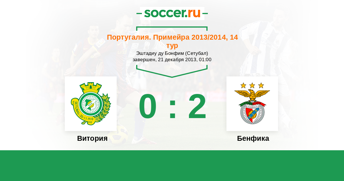 Португалия. Примейра 12.09.2014 Витория Логотип футбольный клуб Витория (Сетубал) 0:5 Логотип футбольный клуб Бенфика (Лиссабон) Бенфика