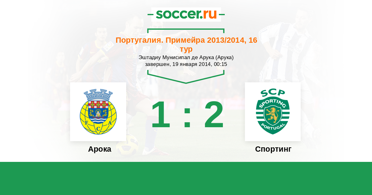 Португалия. Примейра 01.02.2015 Арока Логотип футбольный клуб Арока 1:3 Логотип футбольный клуб Спортинг (Лиссабон) Спортинг