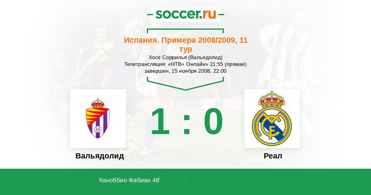 Протокол матча Вальядолид против Реал