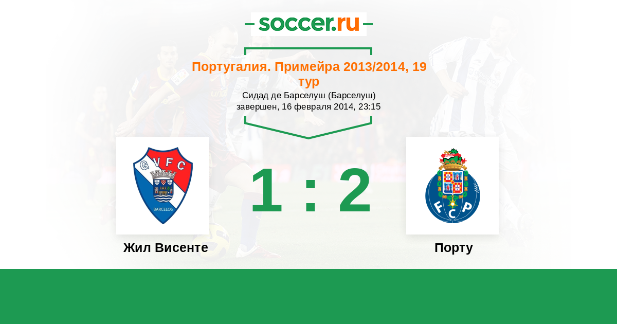 Португалия. Примейра 03.01.2015 Жил Висенте Логотип футбольный клуб Жил Висенте (Барселуш) 1:5 Логотип футбольный клуб Порту Порту