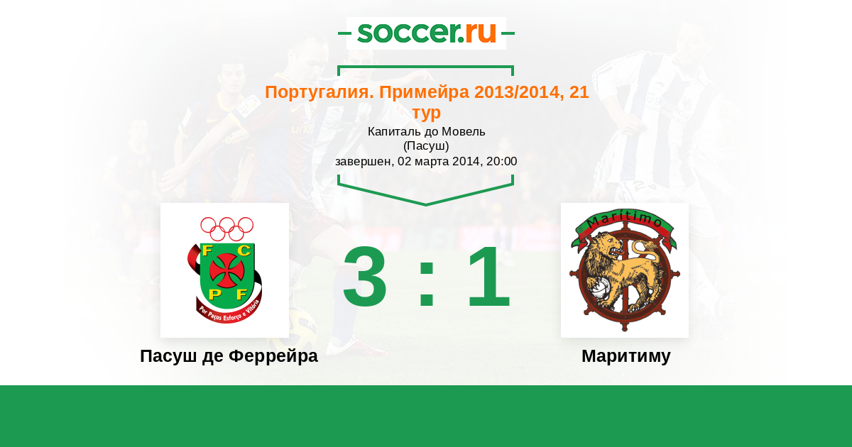 Португалия. Примейра 05.10.2014 Пасуш де Феррейра Логотип футбольный клуб Пасуш де Феррейра 3:2 Логотип футбольный клуб Маритиму (Фуншал) Маритиму