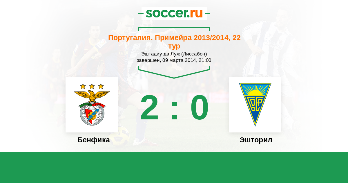 Португалия. Примейра 28.02.2015 Бенфика Логотип футбольный клуб Бенфика (Лиссабон) 6:0 Логотип футбольный клуб Эшторил Эшторил