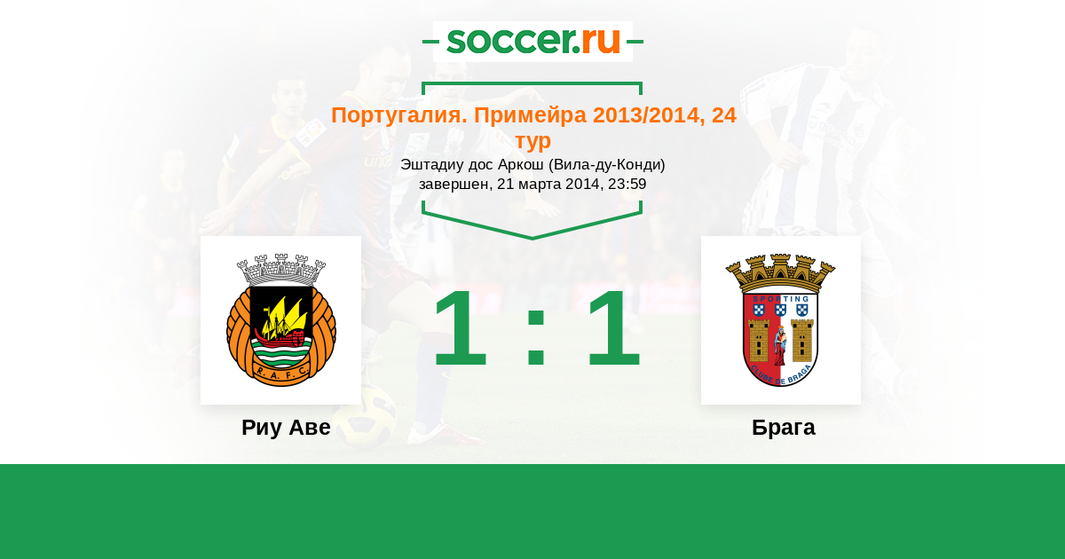 Португалия. Кубок 26.03.2014 Брага Логотип футбольный клуб Брага 0:0 Логотип футбольный клуб Риу Аве (Вила-ду-Конди) Риу Аве