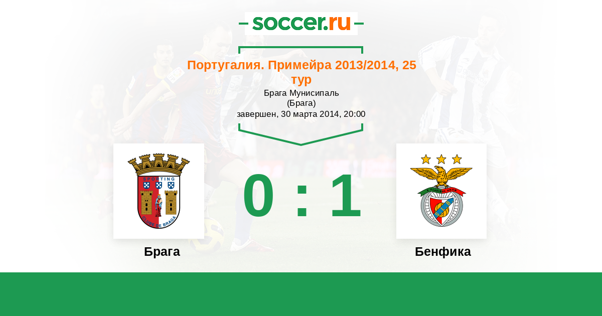Португалия. Примейра 26.10.2014 Брага Логотип футбольный клуб Брага 2:1 Логотип футбольный клуб Бенфика (Лиссабон) Бенфика