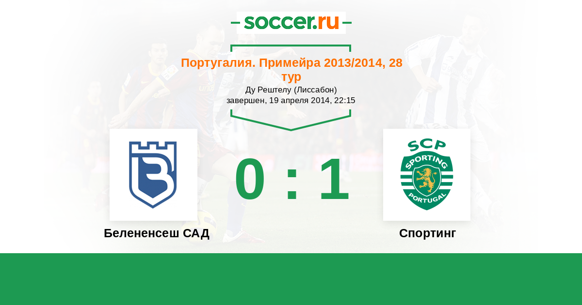 Португалия. Примейра 15.12.2013 Спортинг Логотип футбольный клуб Спортинг (Лиссабон) 3:0 Логотип футбольный клуб Белененсеш САД (Лиссабон) Белененсеш САД