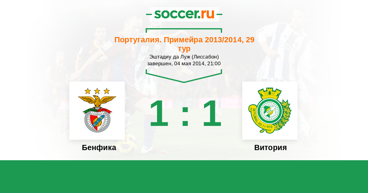 Португалия. Примейра 12.09.2014 Витория Логотип футбольный клуб Витория (Сетубал) 0:5 Логотип футбольный клуб Бенфика (Лиссабон) Бенфика