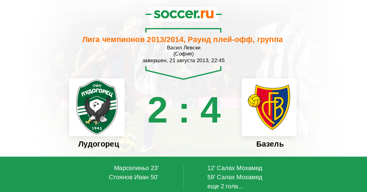 Протокол матча Лудогорец против Базель