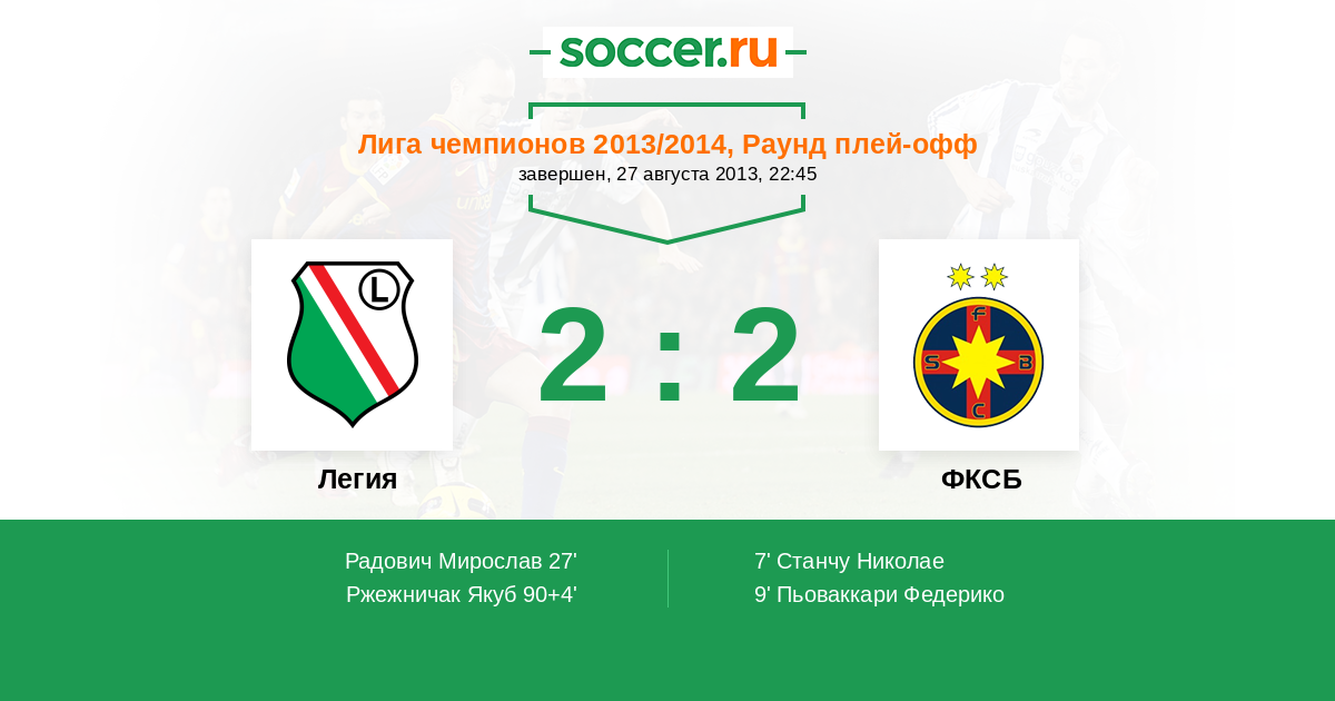 Протокол матча Легия против Стяуа