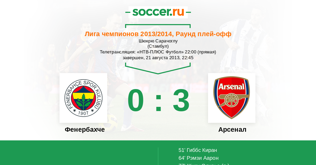Протокол матча Фенербахче против Арсенал