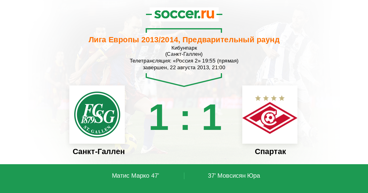 Протокол матча Санкт-Галлен против Спартак