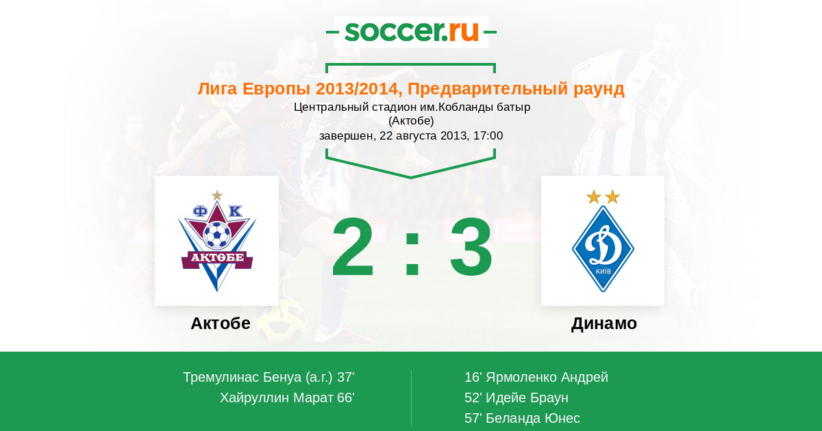 Протокол матча Актобе против Динамо