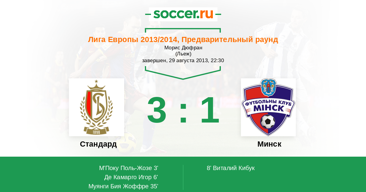 Протокол матча Стандард против Минск