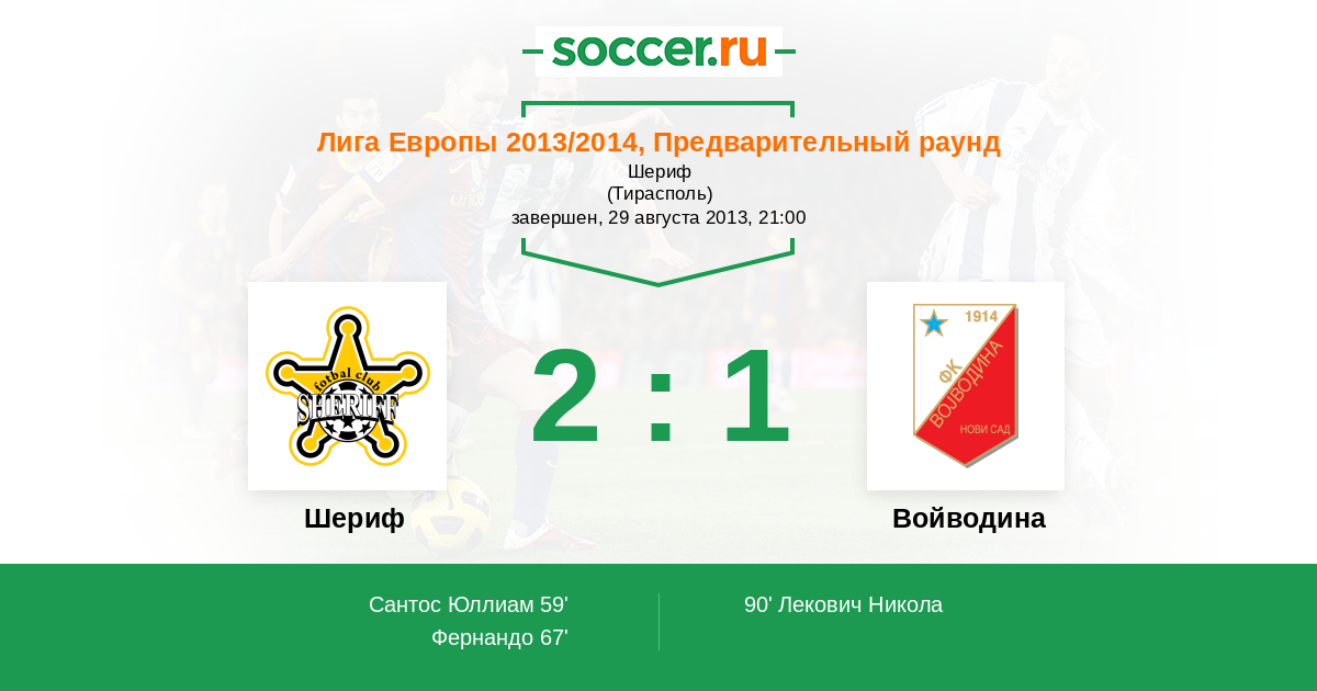 Протокол матча Шериф против Войводина